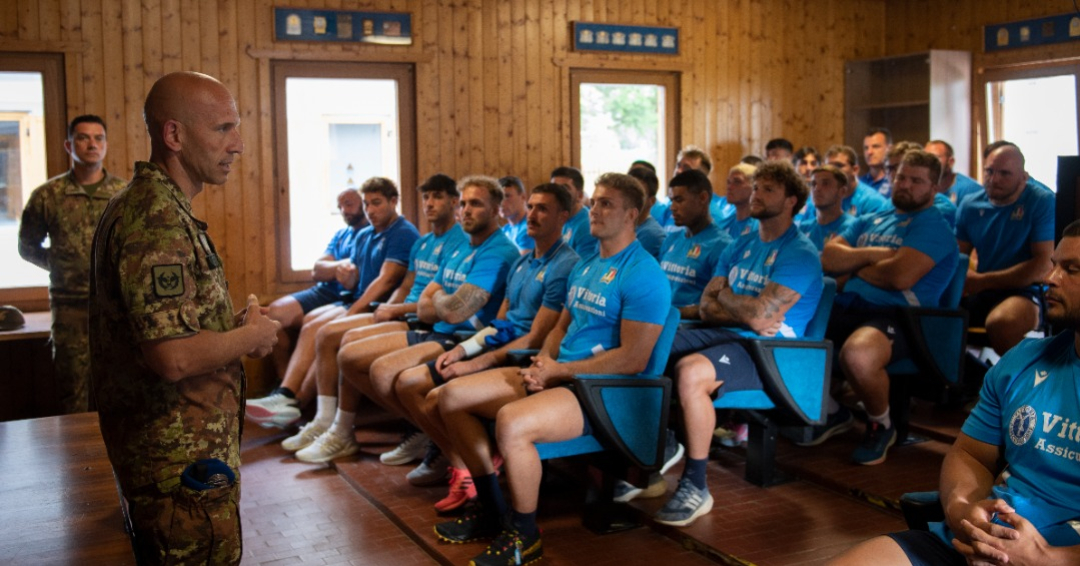 Gli istruttori dell’Esercito addestrano la nazionale italiana di Rugby in vista dei Mondiali.