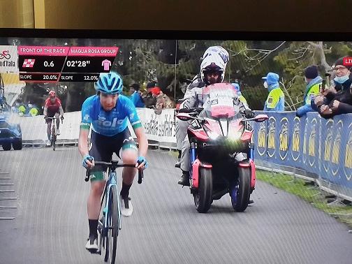 chilometri a causa delle cattive condizioni del tempo. Il colombiano ha incrementato il proprio vantaggio nella classifica generale ed è sempre più maglia rosa. Il corridore della Ineos ha preceduto di 27″ Bardet e Caruso. Quarto posto per Ciccone a 1’18”, davanti a Carthy e Almeida. Ritardo di 2’11” per Vlasov, più indietro Simon Yates con un distacco di 2’36”. Frazione caratterizzata da una lunga fuga composta inizialmente da 24 corridori, poi diventati sei tra i quali Vincenzo Nibali. In classifica generale Bernal ha ora un vantaggio di 2’24” su Caruso, 3’40” su Carthy, 4’18” su Vlasov e 4’20” su Yates.